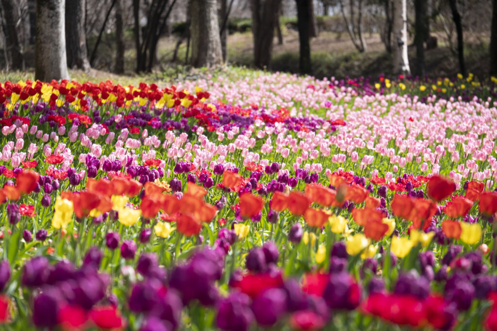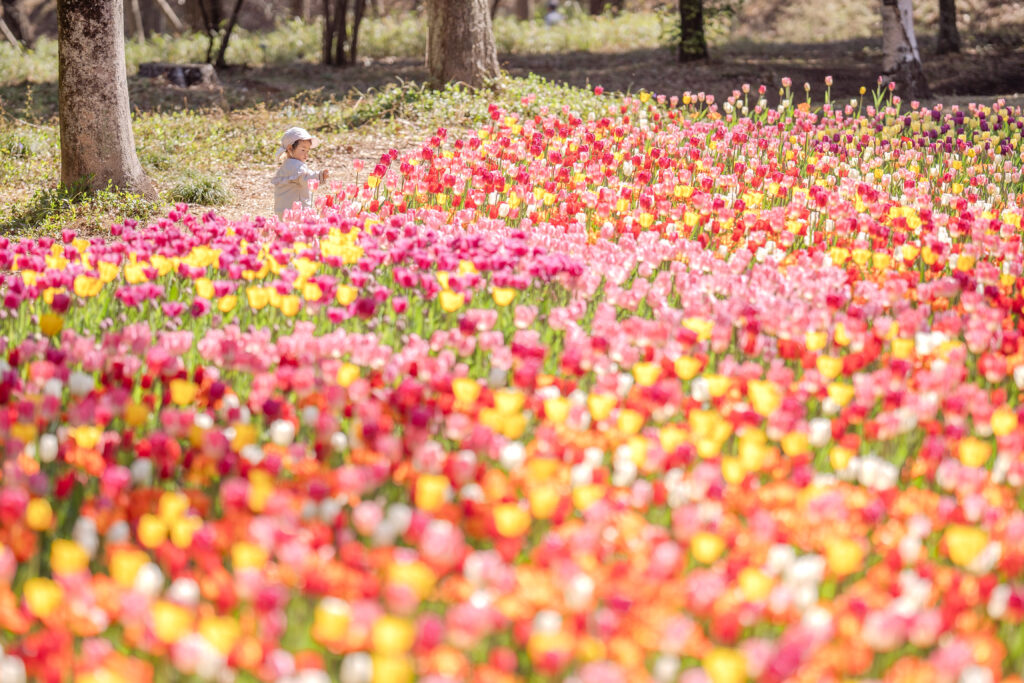 にぎやかな花壇エリアから、静かに春を感じられる森の小道まで、多彩な風景を楽しめるのもポイント。ベンチでひと休みしたり、芝生でゆったり過ごしたりと、それぞれのペースで春の時間を満喫できます。